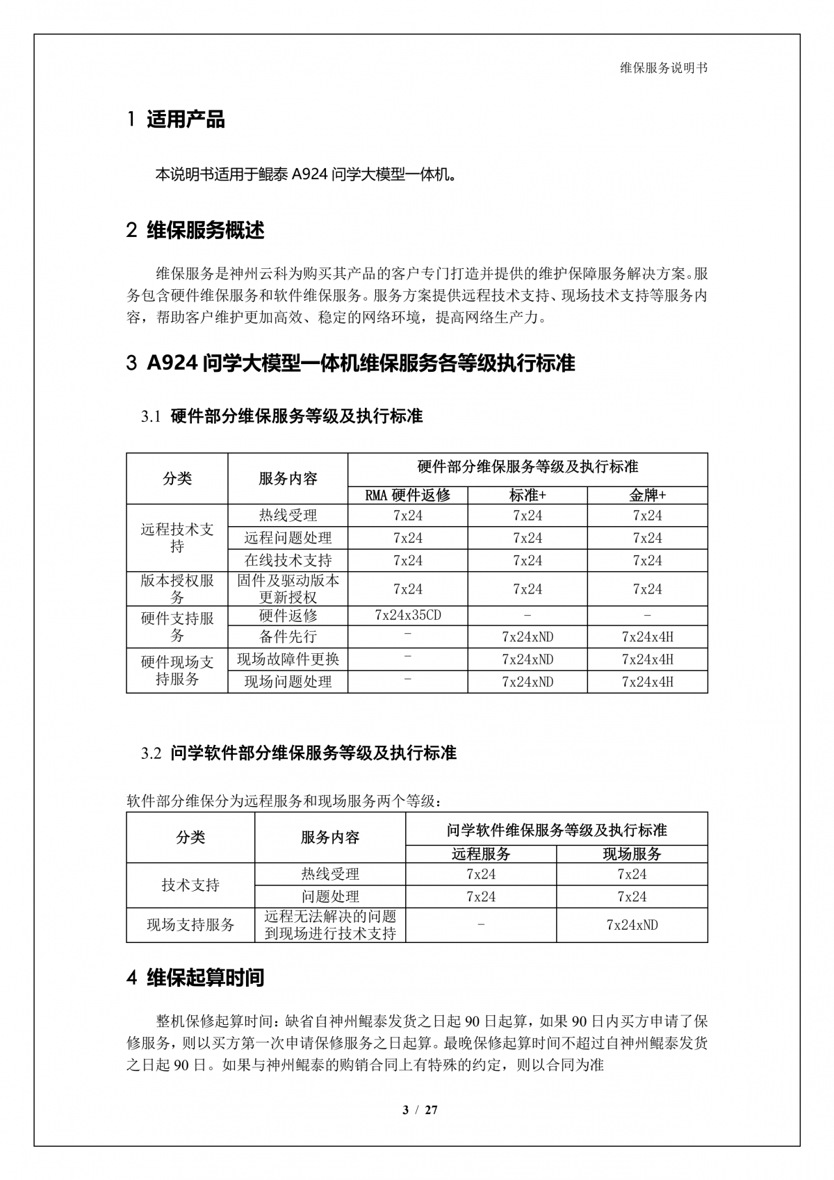 英国上市公司365A924 DS大模型一体机硬件维保服务说明书_V1.1