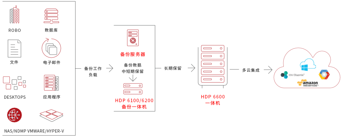 • 与HDP备份一体机及软件深度集成 :数分钟内即可部署完毕数据保护。深度集成可给予一致的端到端长期数据保留和保护